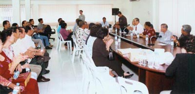晋汉斯省李氏公会秘书李福安(站立者)讲解李氏公会网站事宜。