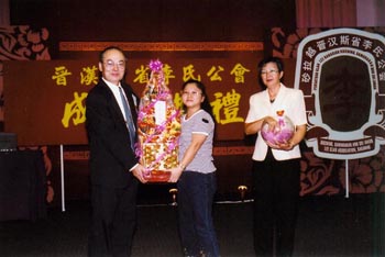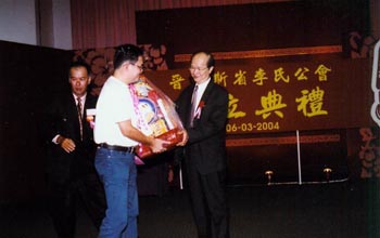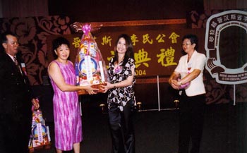 泗里街李氏公会主席李森希(左四)赠送纪念品。