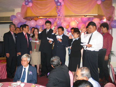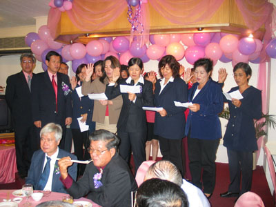 (十三)2002年2月23日举行了第一届会员大会及新春联欢会。首届理事会,青年团与妇女组理事也在会上举行隆重宣誓就职礼。
