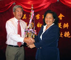 (七)2001年9月8日,本会派出妇女主任佩华、群珍、明珠、伍清、国盛、景昌六位宗亲参加姓氏歌唱比赛,结果佩华宗亲一鸣惊人,荣夺女子组冠军,群珍宗亲则获亚军。明珠宗亲也夺得青年组安慰奖。
