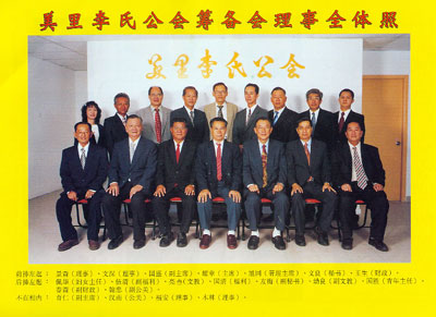 (一)环顾美里四周,各属姓氏之组织均已相当普及,可谓林立,唯我李氏尚未有公会组织,实为美中不足的憾事!现今世道,宗亲间之互相关怀,加强联络,团结 一致,已日形重要。是故,在多位英明宗长热心推动下,登高一呼,发动组会,于1997年7月7日假假日酒店咖啡厅举行第一次筹备会,诸宗亲们皆表达了支持 组会之意愿,并即席成立了筹备会阵容如下: